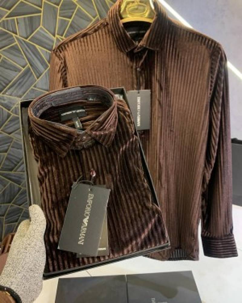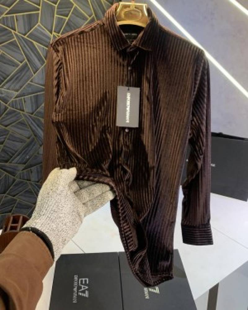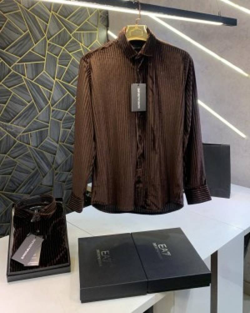 Armani_Exchange_Brown_Luxury_Party_Wear_Shirt_With_Box_Packing_And_Carry_Bag_(1253)
