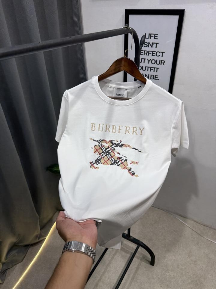 ? *Burberry imported round neck tshirt with full embroidery brand name and logo and original tags now available in stock*?