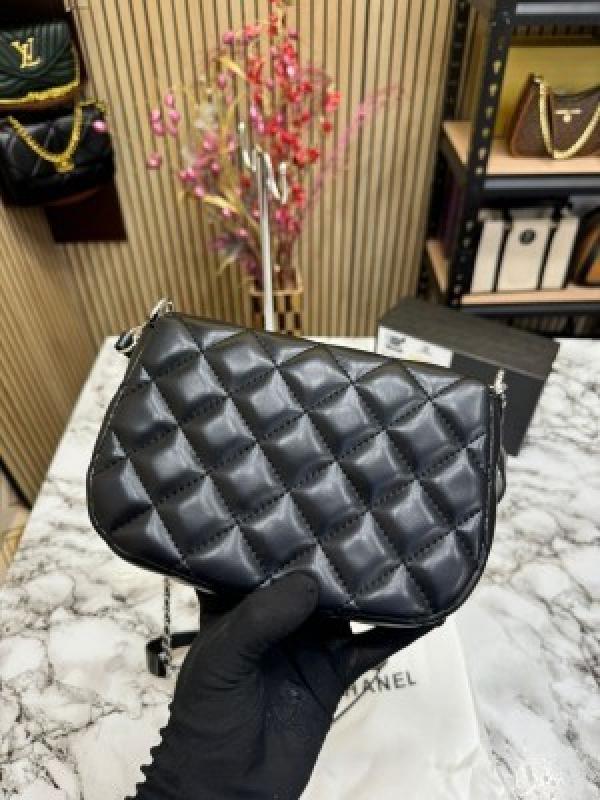 CHANE_L CC WOMENS FLAP LAMBSKIN SHOULDER BAG WITH OG BOX AND DUST BAG PREMIUM QUALITY (BLACK)