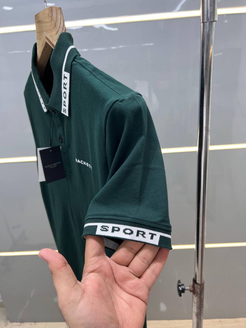 Hacket t Green Premium Polo Tshirt With 240 gsm interlock cotton lycra fabric and Collar Design with Emboss Logo 2725