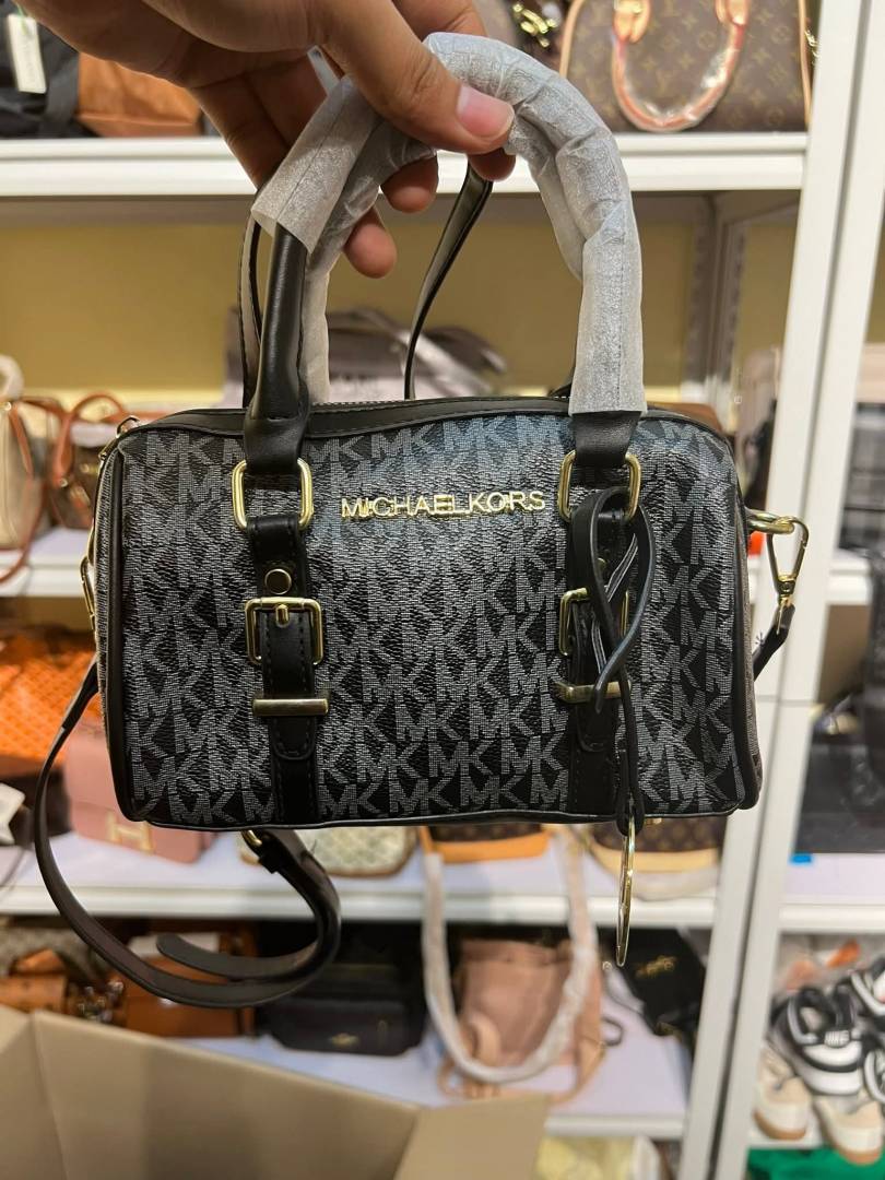 Michael_Kors Bedford Legacy Extra-Small Logo Duffle Crossbody Bag in Black Logo-print Canvas With Acorn Leather (1712)