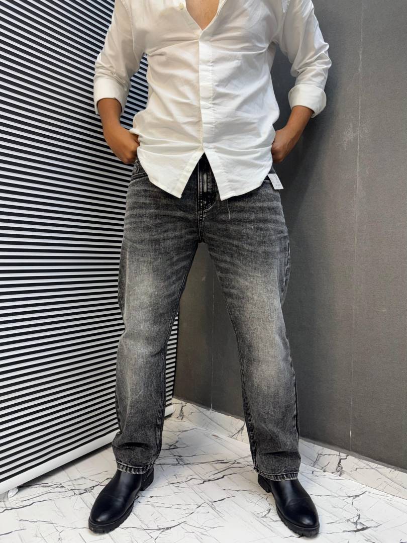 True Religio n Blue Shade Premium Imported Stretchable Lycra Fabric Straight Fit Denim with Back Flap pockets 2585